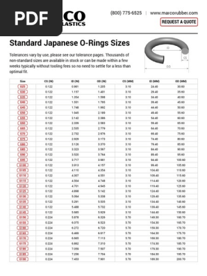 Marco O Ring Size Chart Japanese Pdf Industrial Processes Metalworking